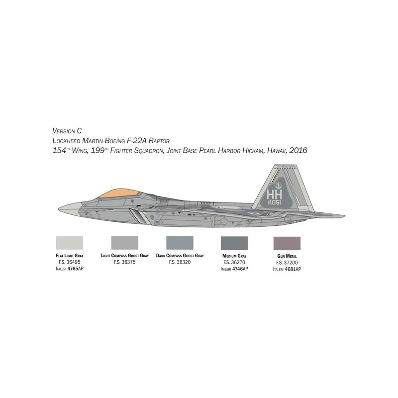 Le Lockheed Martin-Boeing F-22 est un avion de combat furtif de 5ème génération utilisé par l’U.S Air Force. Extrêmement innovant dans sa conception et son design, le Raptor est équipé de deux turboréacteurs à postcombustion Pratt & Whitney F119 en mesure de générer une poussée vectorielle avec le mouvement des tuyères. La furtivité est obtenue grâce aux formes étudiées et à l’utilisation de matériaux composites qui minimisent la signature radar. Une grande attention a été accordée à la conception des prises d’air et des tuyères afin de réduire la chaleur générée et les émissions sonores. L’armement air-air et air-sol est installé dans des soutes à l’intérieur du fuselage pour minimiser la section frontale et donc la détectabilité par les radars ennemis. L’avionique est extrêmement avancée et peut détecter, suivre et acquérir des cibles même à longue distance.